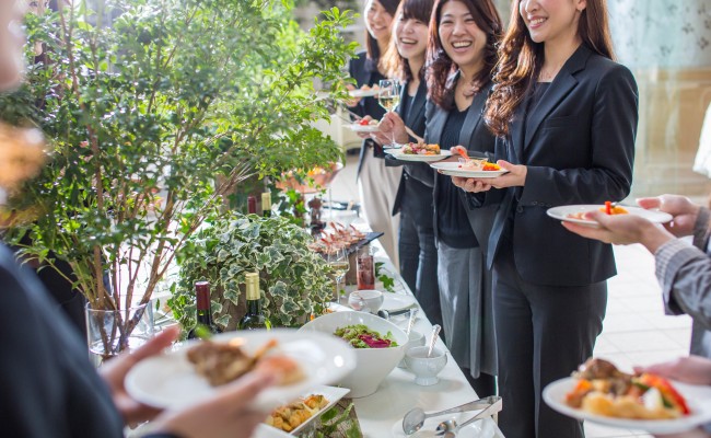 レンタルホールでのセミナー終了後、同施設のホワイエで開催された懇親会にてご利用いただきました。30〜40代の男性中心のパーティのため、大皿料理も充実しながら価格もリーズナブルなプラン「サファイア」をご提案させていただきました。和牛ローストビーフのライブカーヴィングには多くの方が列を作っていただき、いつものことながらイベント効果は絶大でした。